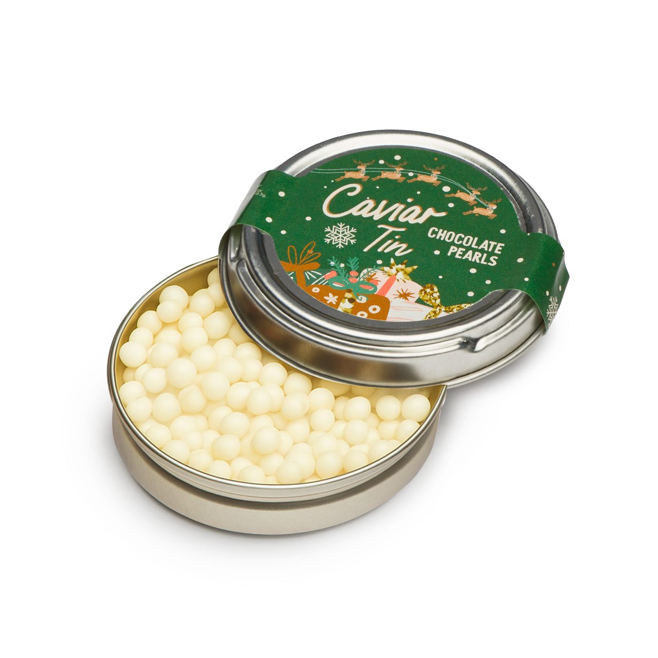 Unwrap the magic of winter with our White Chocolate Pearls, elegantly encased in a chic Caviar Tin. These creamy delights are perfect for adding a touch of festive cheer to any campaign. 🎄